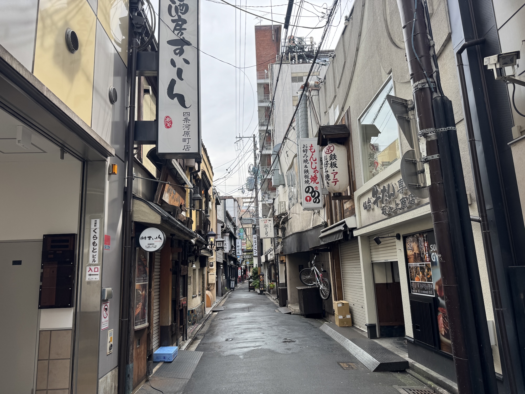 周辺の裏路地も、昨夜の混沌がうそのよう。昼と夜とで全く異なる顔をのぞかせるのが京都の魅力なのかもしれない。