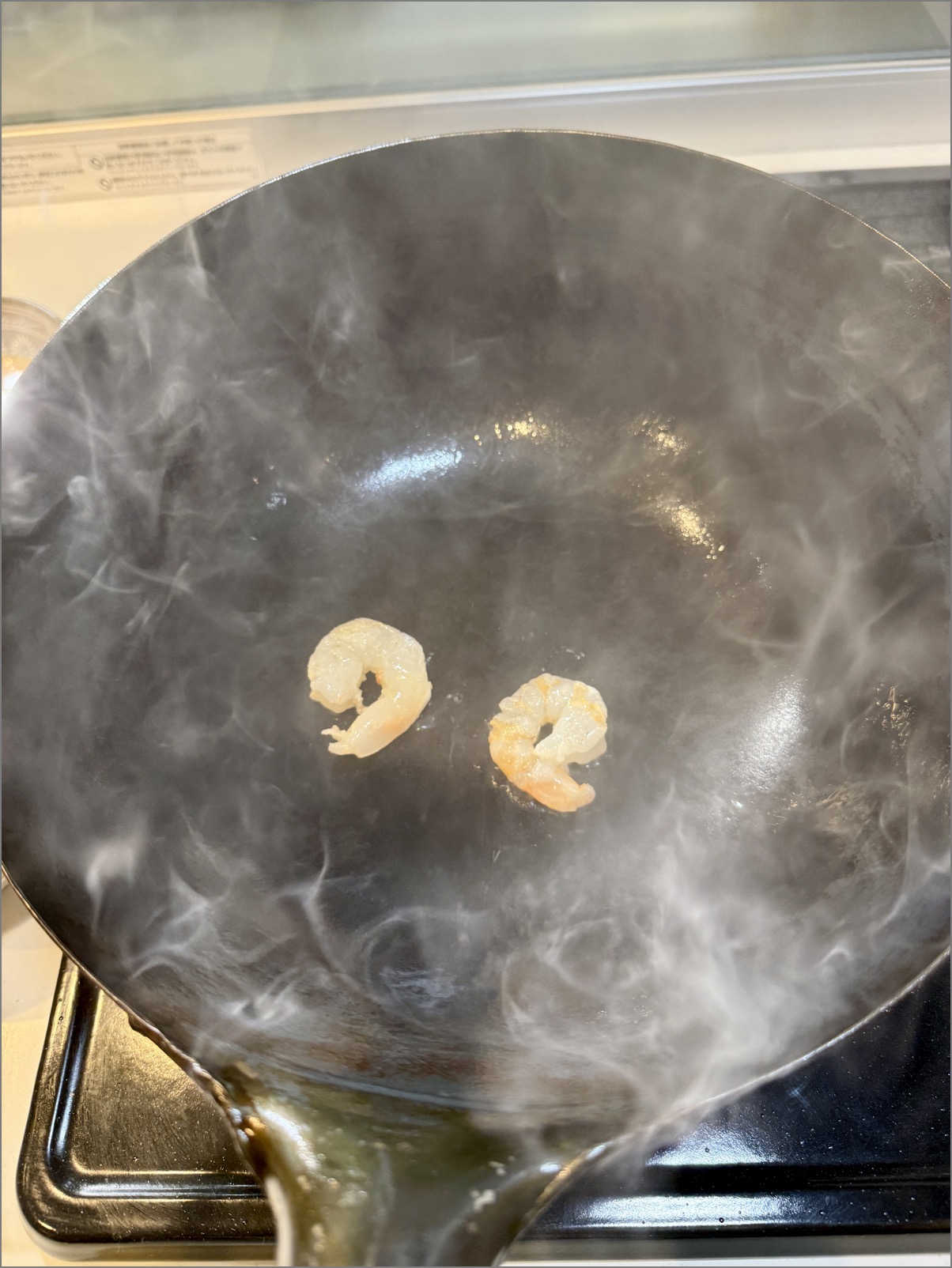 2:鍋にラードを入れエビ2個を焼いて器に戻す。
