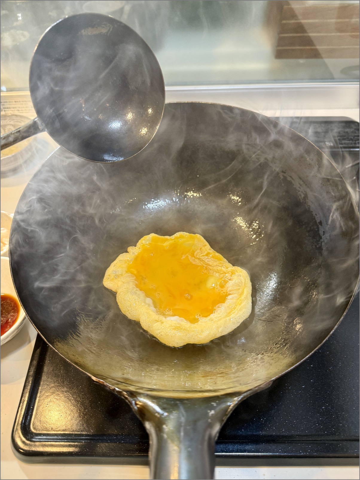 3:鍋にラードを入れ卵1個を焼いて器に戻す。