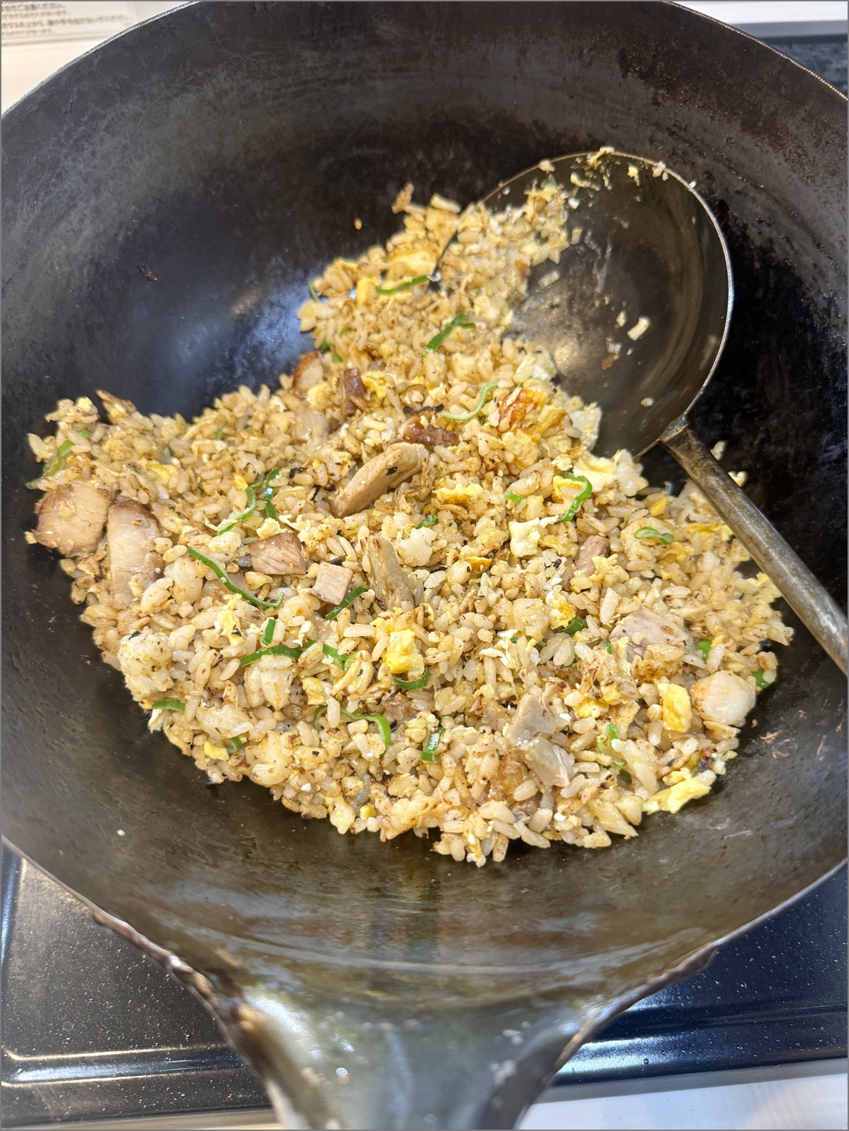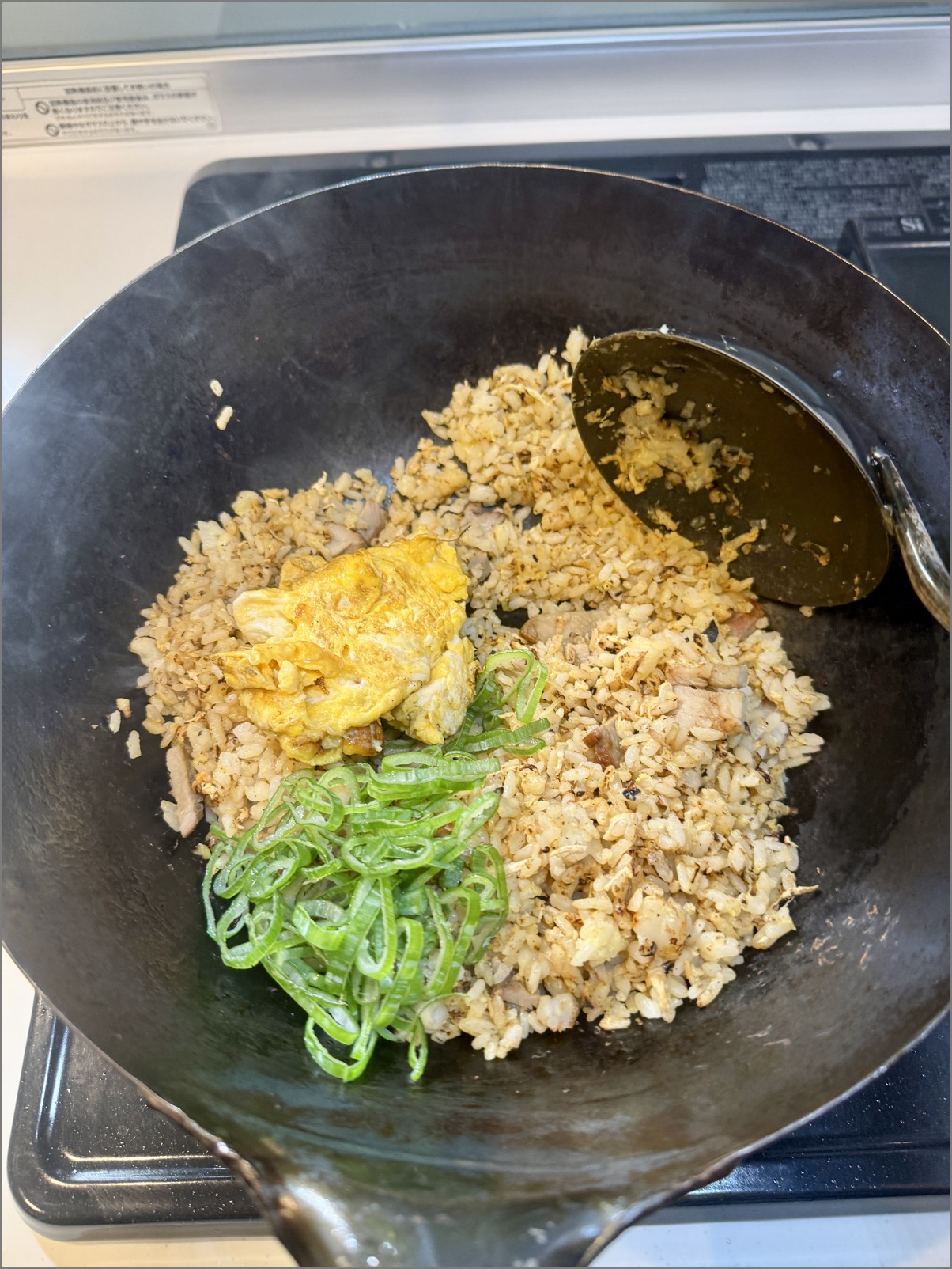 この使い方が功を奏したのかなんなのか、なぜか今回のチャーハンはいつも以上にパラパラで、れんげですくうのに苦労したほど。この方法、なかなか面白いかも?