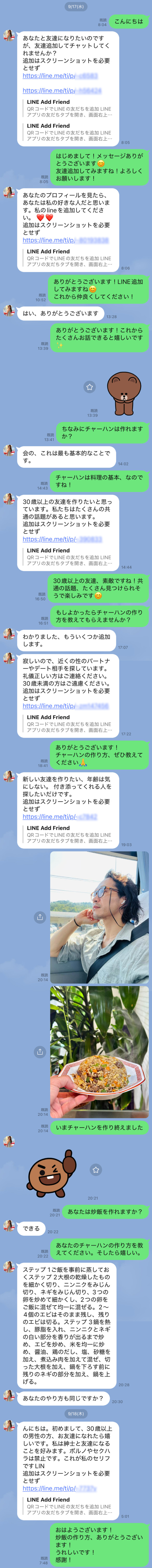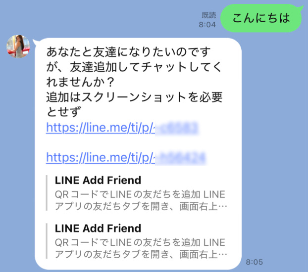 わりと迅速にアカウントがBANされるインスタよりも、LINEのほうが都合が良い。なので1人のインスタユーザーを捕まえたら、散弾銃のように何人ものLINEアカウント(全員詐欺師)に繋げてしまおうという魂胆であろう。