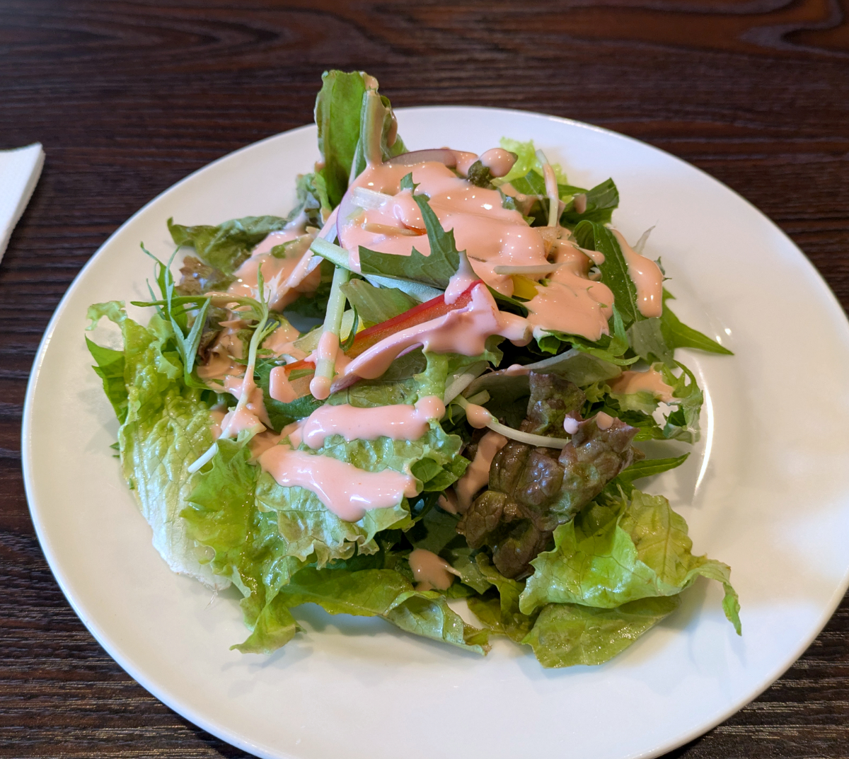 まずはサラダ。ランチにはスープ・ライス・ドリンクが付くとのことだったが、どうやらコンビにはサラダも付いていたらしい。予想していなかったので、ちょっと嬉しい。