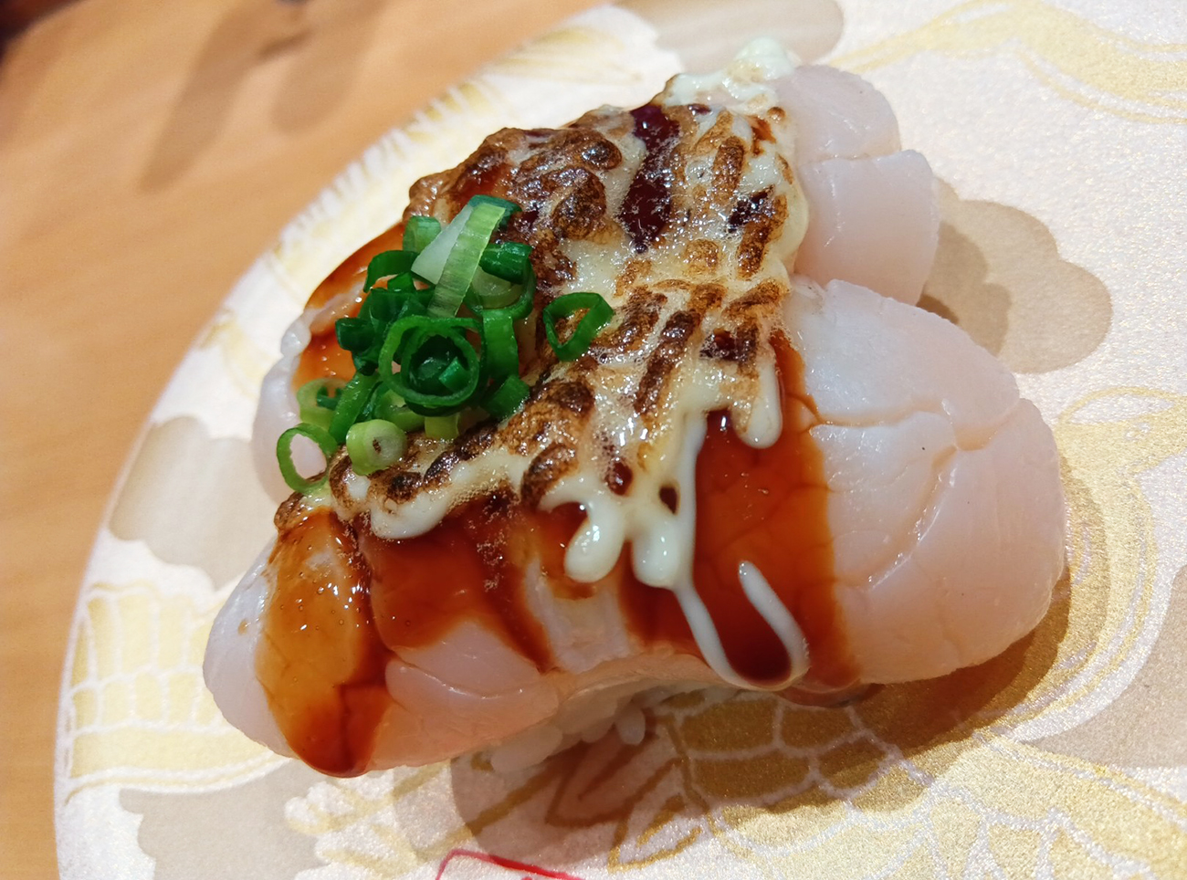 ▼このほたてを創作寿司に使うダイナミックさ。炙りほたてマヨ