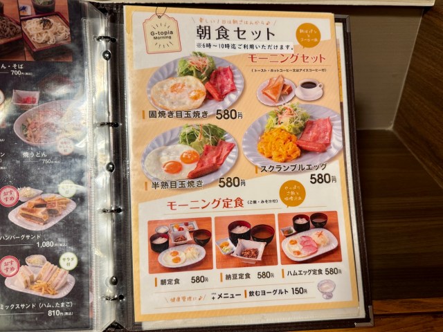 翌朝は3階のレストランで朝定食(580円)を注文。朝風呂の後だからしっかり目に食べたいぞ。