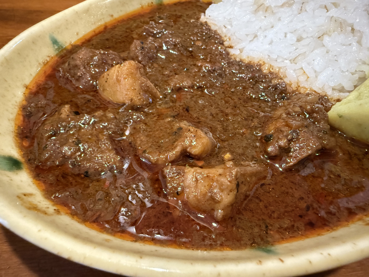 強めの酸味。ビネガーキレキレ系のポークビンダルー。