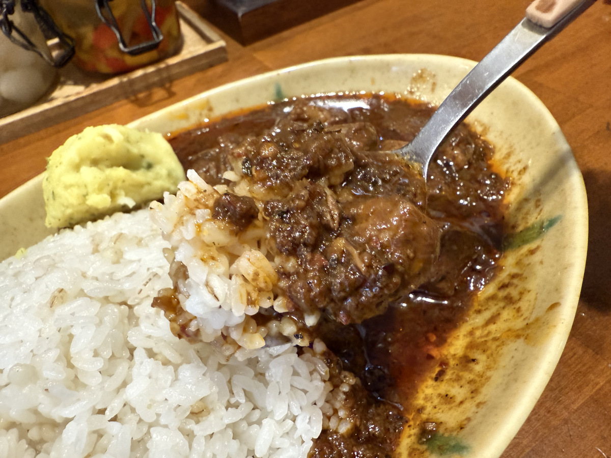 簡単に言えば “すっぱからいカレー” で、そのインパクトはカレーの中でも最高レベル。酸味ですら受け止めてしまうカレーの奥深さに改めて感嘆している次第だ。
