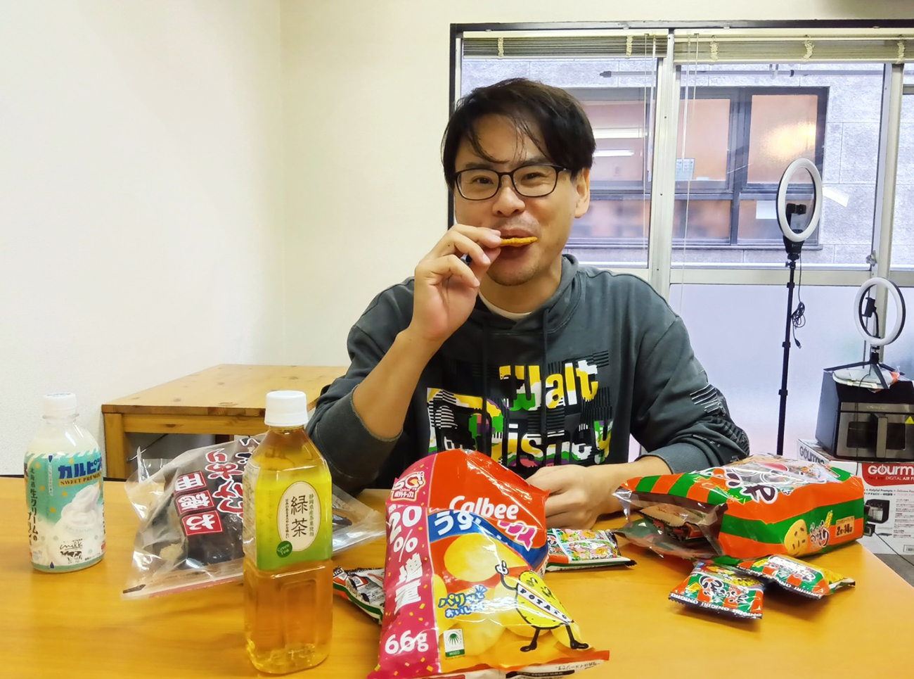 大阪出身の中澤は関西圏で販売されているという「おにぎりせんべい」を中心にしたセレクト。飲料を購入したのも実は中澤1人だ。