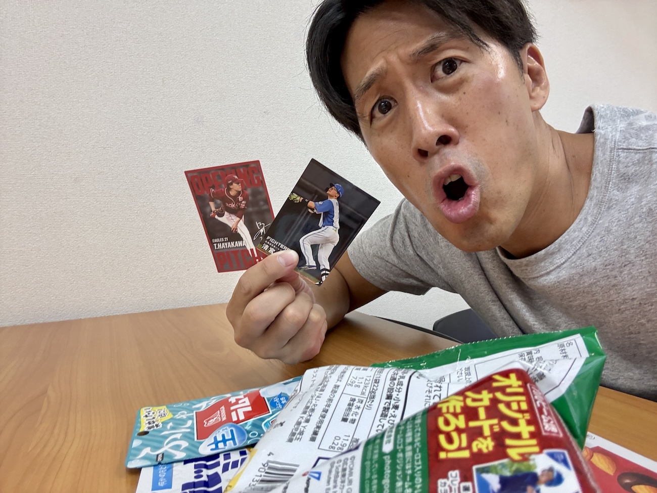 この中でとくに好きなのは「生ラムネ玉」と「スコーン」。ちなみにプロ野球チップスのカードは日ハムの清宮選手と楽天の早川投手でした!」