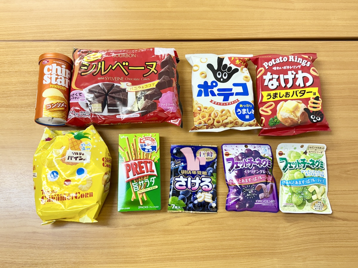 今回、購入したのはほとんどがそういった安い商品たちである。限られた金額で何個お菓子が買えるかという、遠足のおやつ方式でチャレンジした。