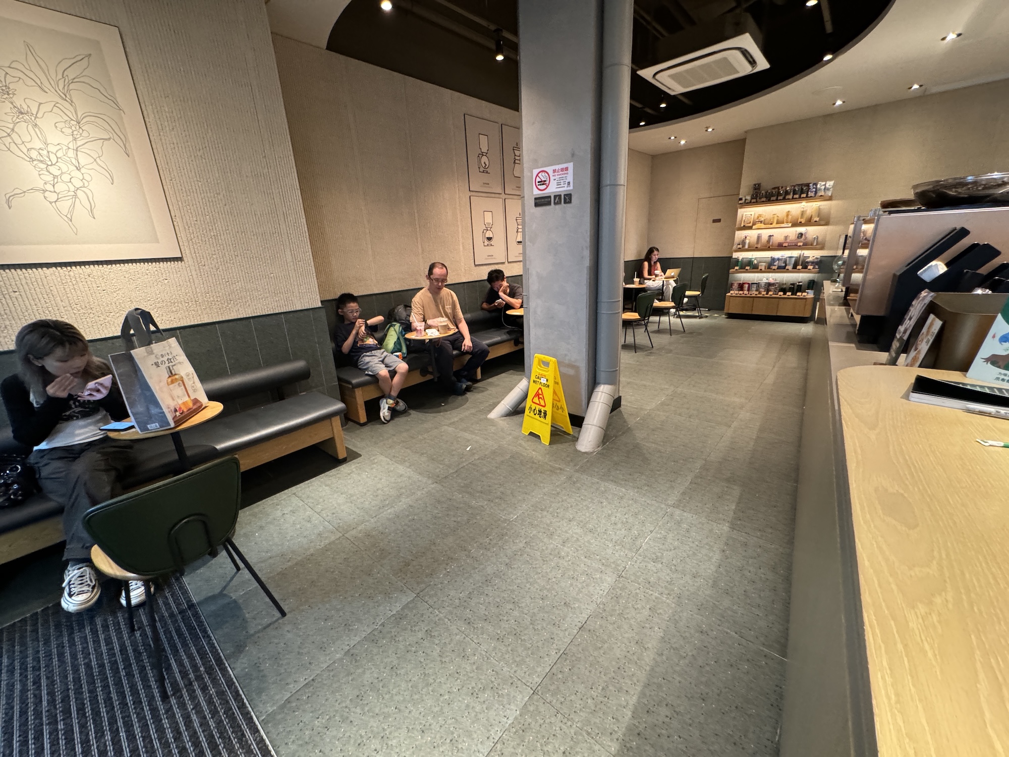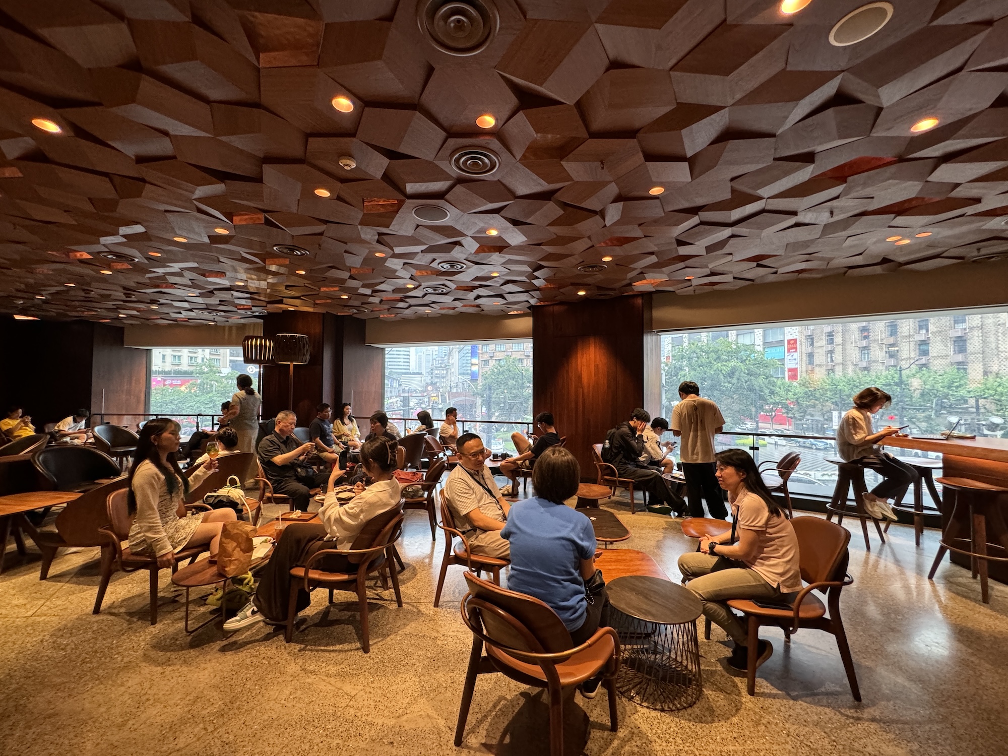 さっそく入店したスターバックス 上海静安四季坊店。あくまで想像だが、どことなく「疲れちゃったな〜」みたいな雰囲気のメンツが揃っているように思われた。