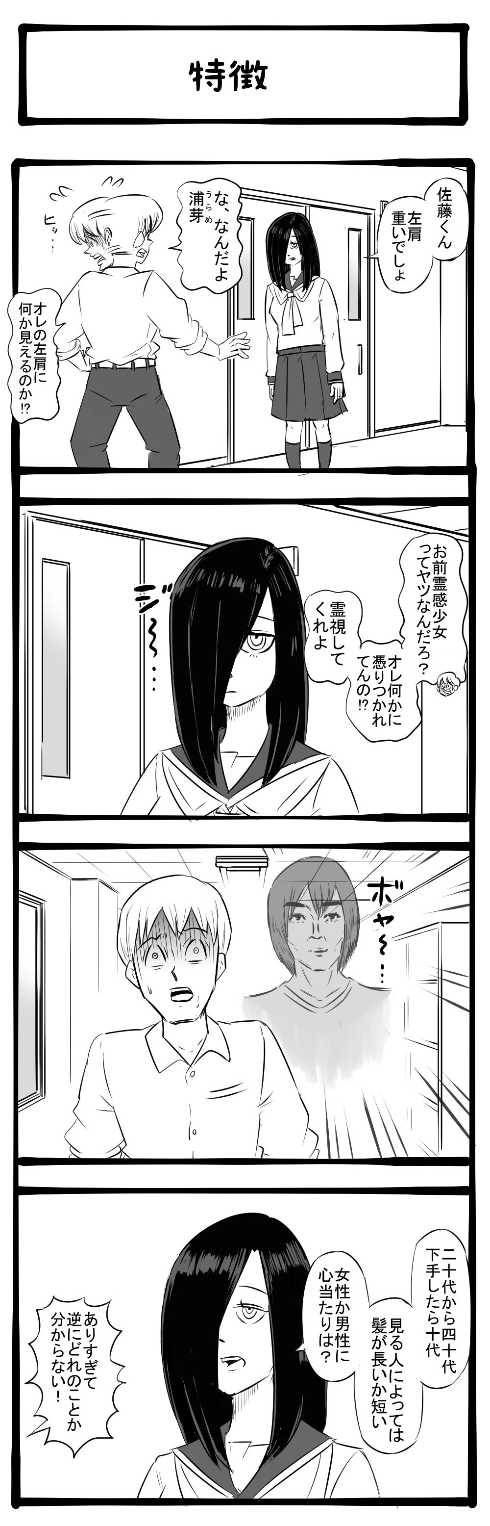 もっと詳細に! なんとも言えない霊に憑かれた少年! 四コマサボタージュBYD第222回「特徴」