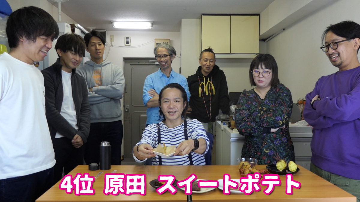 原田「芋スイーツでお馴染みの「らぽっぽファーム」で買ってきました。コレ、ただのスイートポテトと思われるかもしれないけど、ちゃんと焼き芋ですので。裏に皮がついてますから。お店で2番人気だそうです。これで初勝利を狙います!」