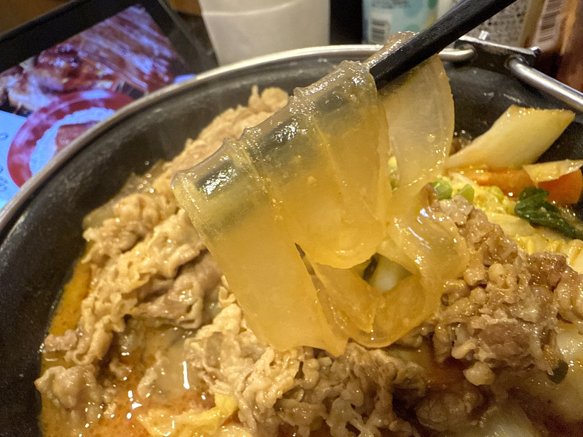 また具にも「板春雨」が使用されるなど、麻辣湯の再現率はかなり高い。あくまで鍋なのでスープ主体ではないことはあるが、牛丼チェーン店とは思えないほど本格派の麻辣湯であった。