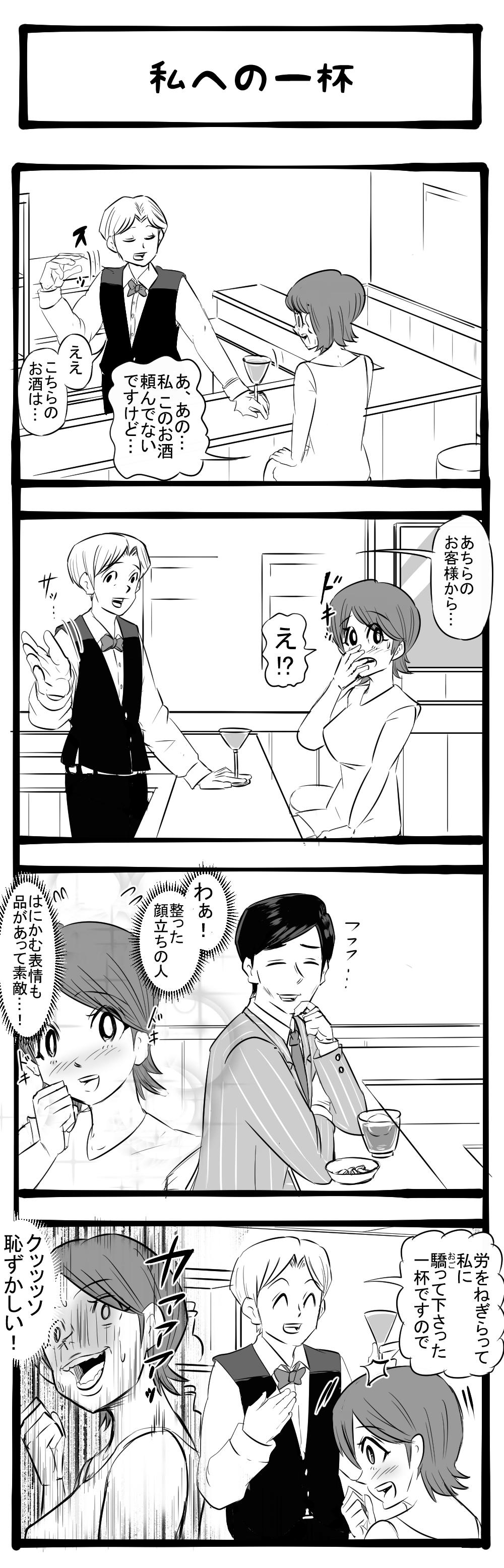 お前のじゃねぇから! 浮かれた心が羞恥心へと変わった女性! 四コマサボタージュBYD第224回「私への一杯」