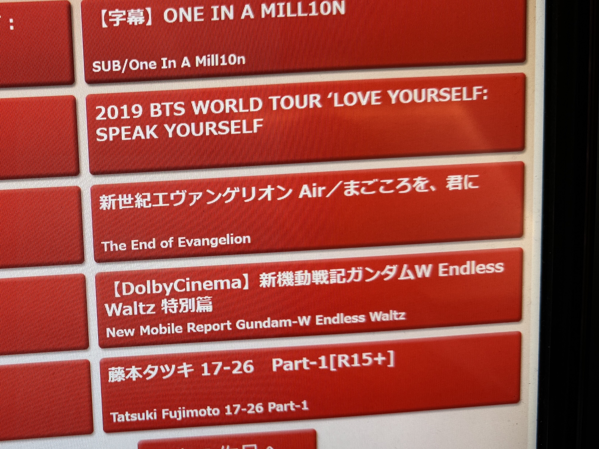 エヴァの「エ」の字も見当たらない。まぁ1週間限定の再上演なのでそりゃそうか。平日にも関わらず座席はほぼ埋まっている。みんな97年におばあちゃんと鑑賞したトラウマと向き合いに来たのだろうか?