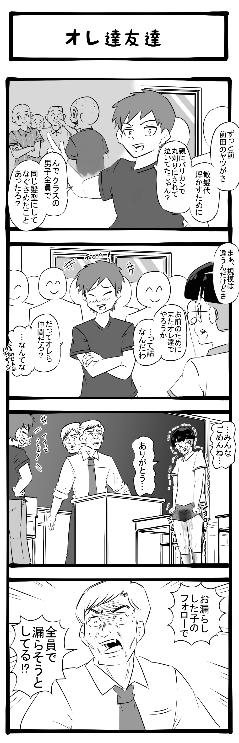 示せ、友情の証! 良からぬ空気を察知する教師! 四コマサボタージュBYD第225回「オレ達友達」
