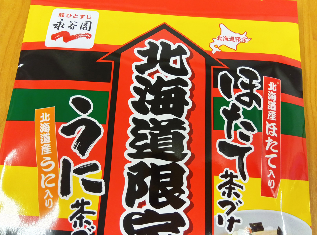 先日、北海道に行った私(中澤)。編集部への土産でも買おうかとJR旭川駅の土産物屋をブラブラしていたところ、なんと永谷園のお茶づけ海苔の北海道限定味が販売されていた。永谷園のお茶づけにまで!? その味とは「うに」「ほたて」。どんなものか気になったため買ってみた。