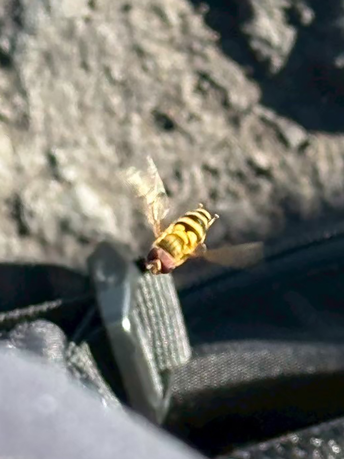 もっと言えばハナアブなのかも不明。なぜなら、もしもハナアブだった場合は、“その名前とは裏腹に、実はアブでなくハエなので、人を刺さない” から。