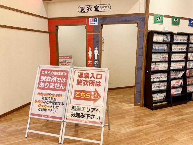 それでは私も館内着に着替えて温泉へ……と思ったが、これがなかなか遠い。古沢も書いていたが「温泉までの道のりが長い」というのは本当だった。マジで想像の3倍は歩いたぞ。フードコートを抜けてから、体感150メートルは歩いた。