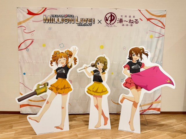 そして露天風呂。源泉掛け流しの湯に浸かりながら、大型スクリーンを眺めることができる。たまたま訪れた日は『アイドルマスター ミリオンライブ!』なるアニメとコラボしていて、スクリーンではミュージックビデオが上映されていた。