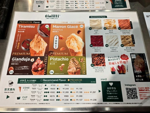 メニューはこんな感じ。通常のフレーバーと、少し高級なプレミアムフレーバーがあって、その組み合わせによって値段が変わるシステムだ。