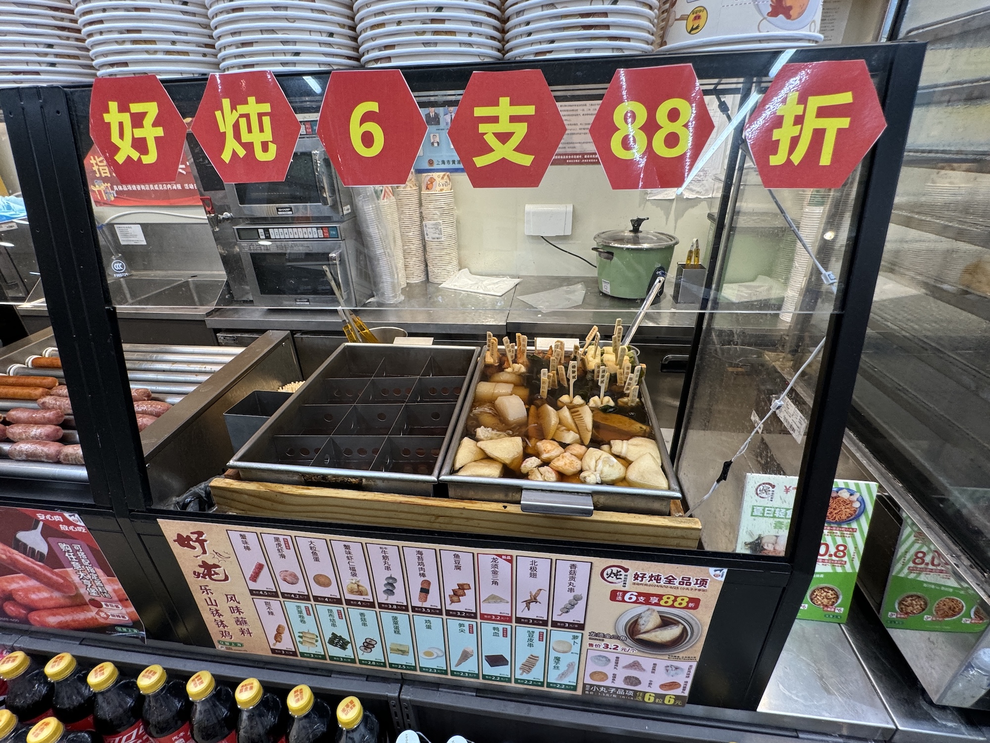 先ほど「最近コンビニおでんって全然見ない」とお伝えしたが、中国のコンビニ(セブンイレブン、ローソン、ファミマ)ではおでんがシャカリキに販売されている。