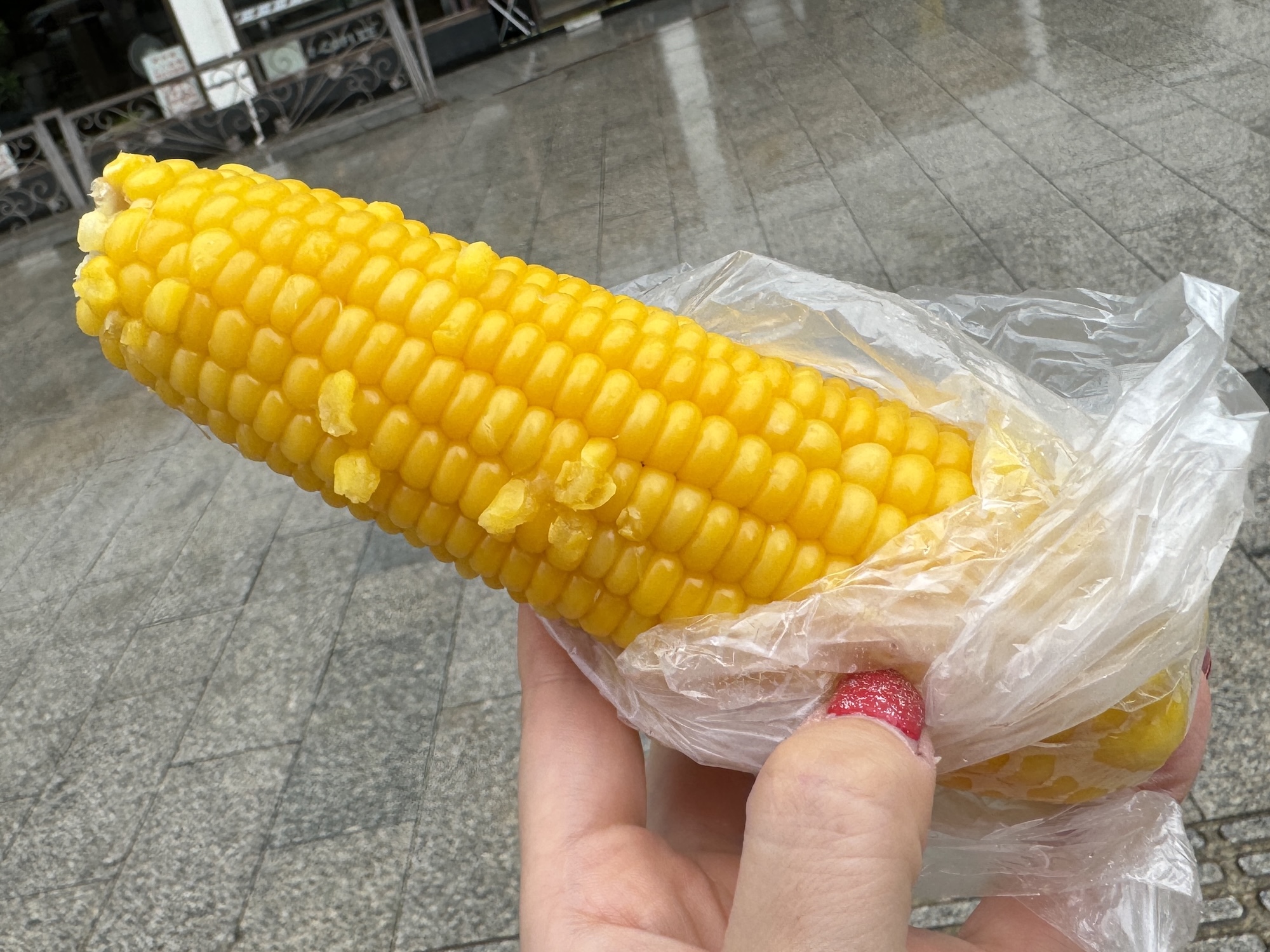 日本ではまず見かけない「コンビニとうもろこし」。とりあえず肉まんのノリで食べてみた!