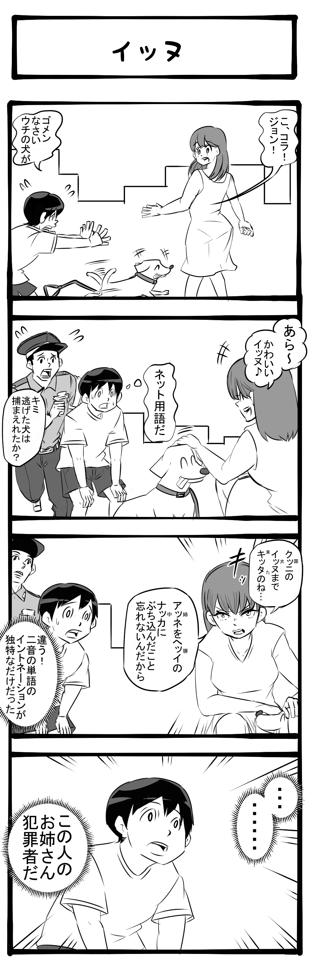 許すまじ公権力! 体制に牙をむくネット用語多用女性! 四コマサボタージュBYD第227回「イッヌ」