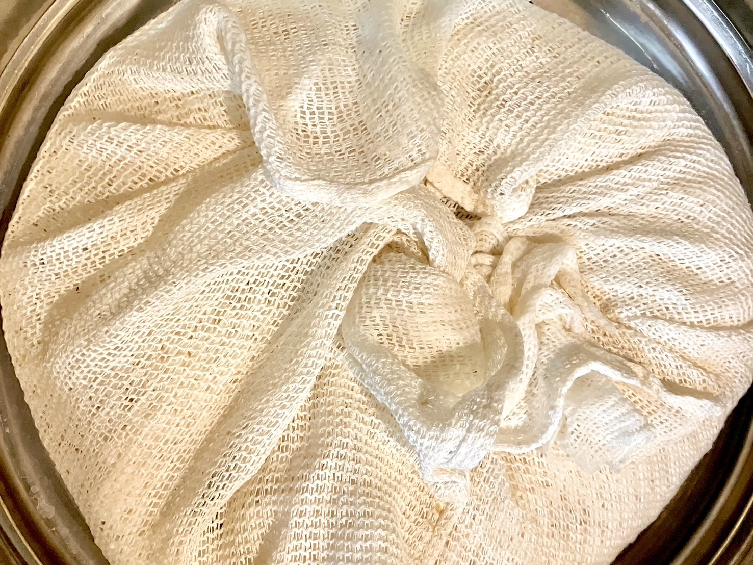 布を使ってもち米の水を切り……