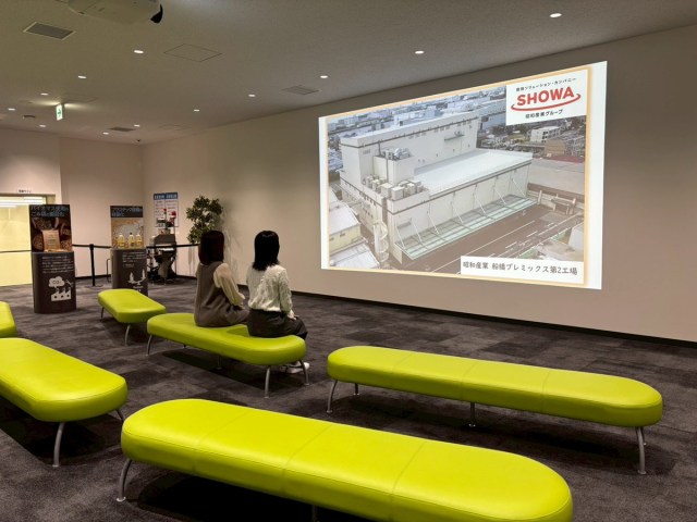 担当の方に案内され、ミックス粉を製造している「船橋プレミックス第2工場」へと進んでいく。2022年に竣工したばかりで、昭和産業の自社工場の中でも最大規模を誇るとのこと。