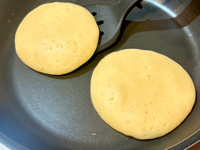 【モチうまレシピ】ホットケーキに餅をいれる「餅パンケーキ」を厚焼きにしたら “最強モチぷる食感” になった!! 混ぜる → 焼く → 放置でOK
