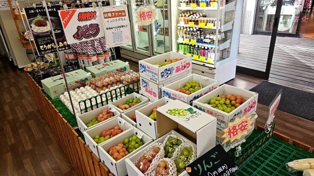 中でも、山梨県笛吹市産の「シャインマスカット&クインニーナ」が2㎏で税込1500円と破格で販売されていてビックリ。