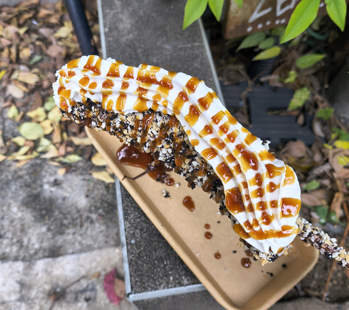 それで私が選んだのは、ホイップありのチョコレートのチョコキャラメルクランチのキャラメルソースだ。もう何の説明をしているのか、自分でもよくわからなくなりそうだが、とにかくそういうチョコバナナである。