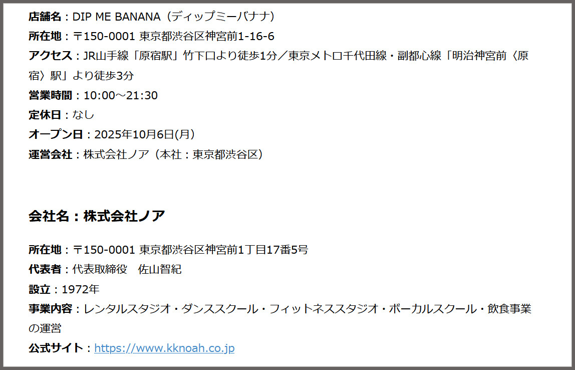参考リンク:DIP ME BANANA、NOAH、PRTIMES