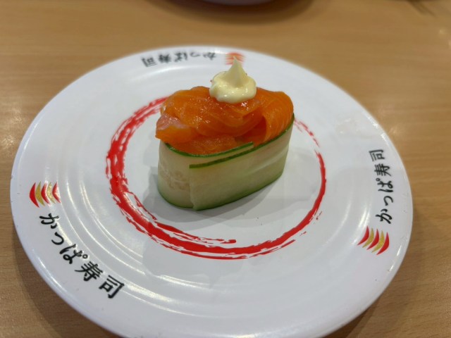 店内飲食限定の「かっぱ軍艦」からは「特盛サーモンぶつマヨ(110円~)」を注文。