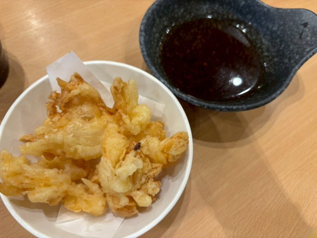 ▼「甘ガリ天盛り(110円~)」は、本当にがりをぎゅっと集めて天ぷらにしている商品だった