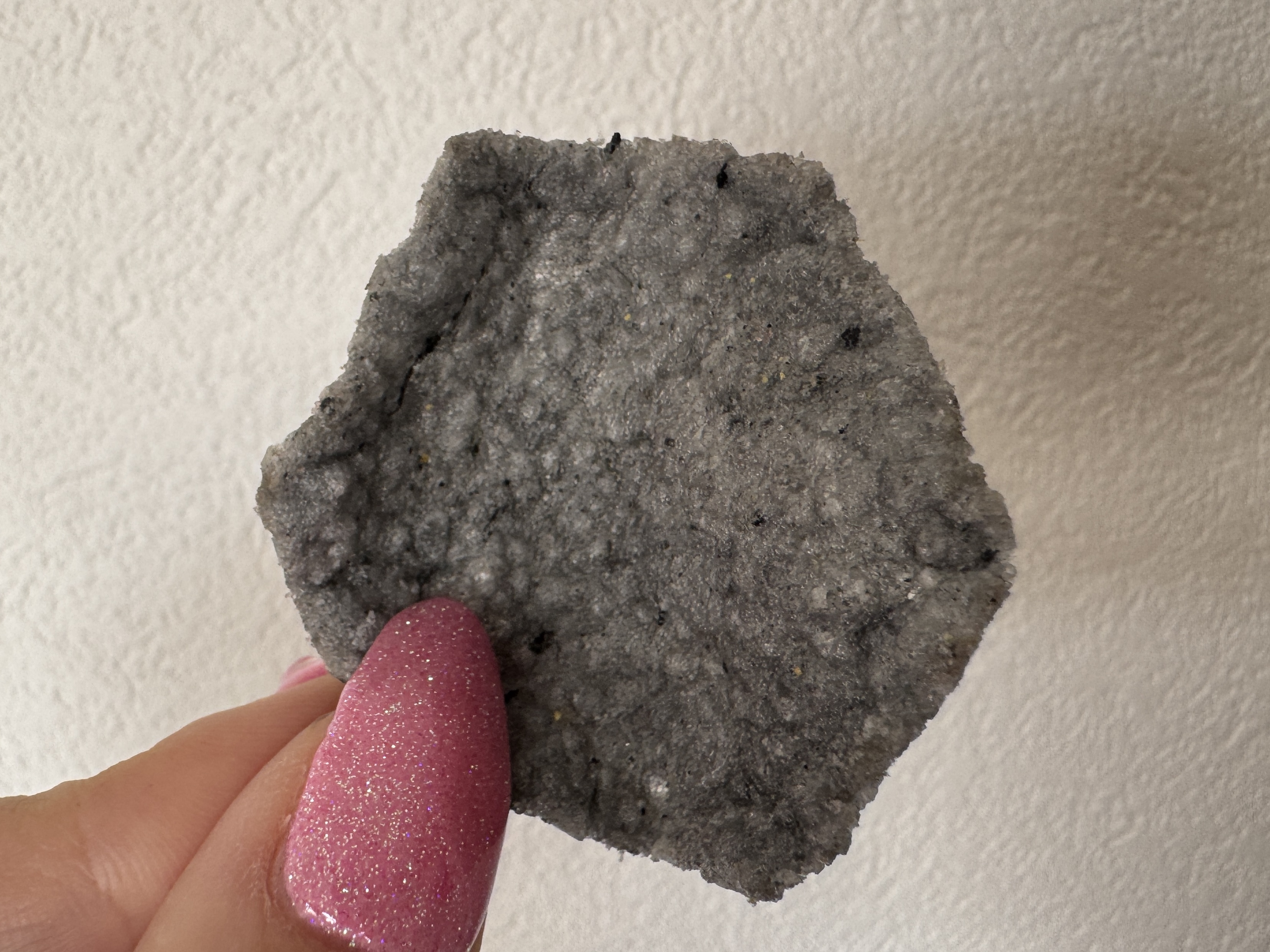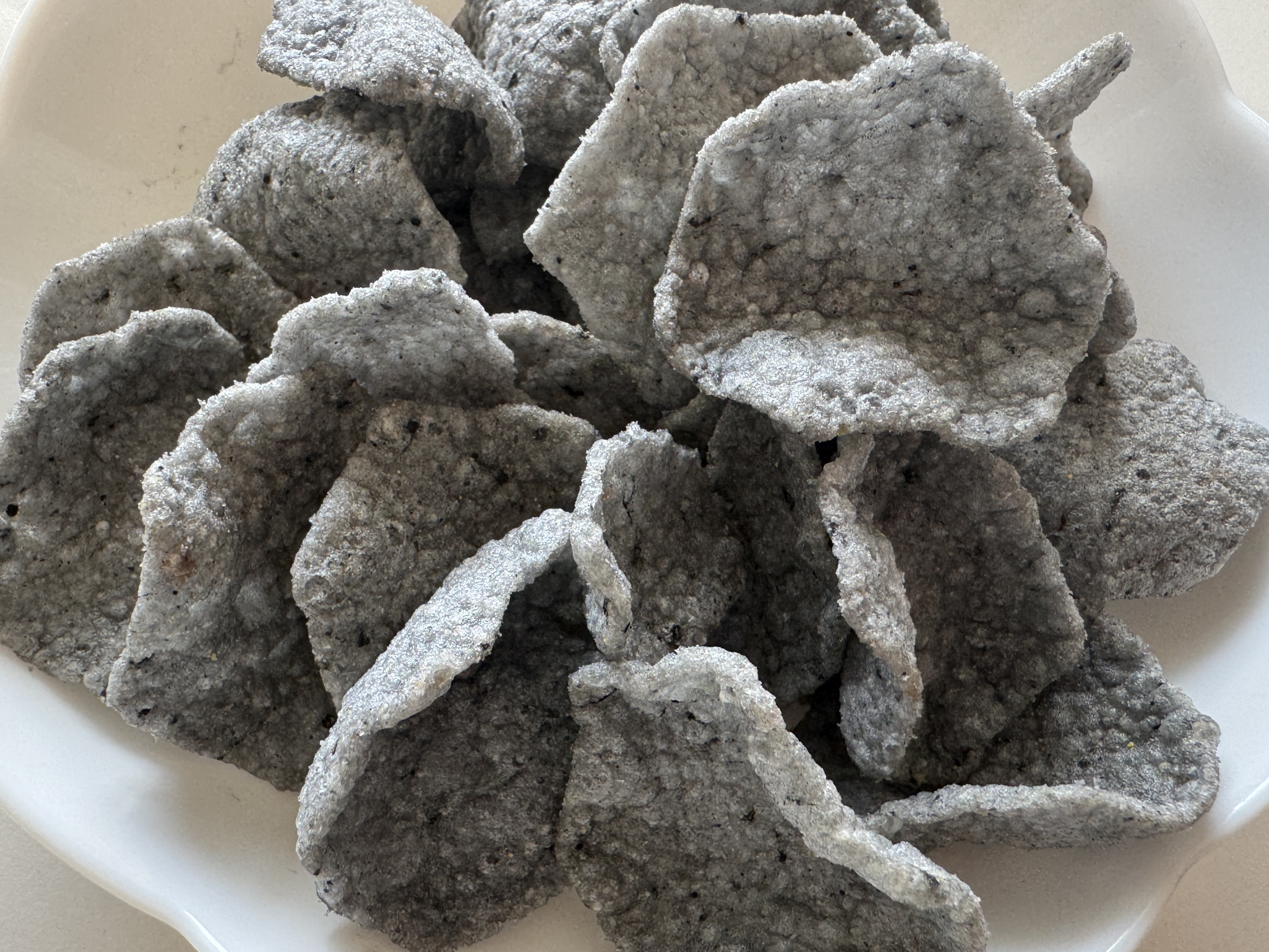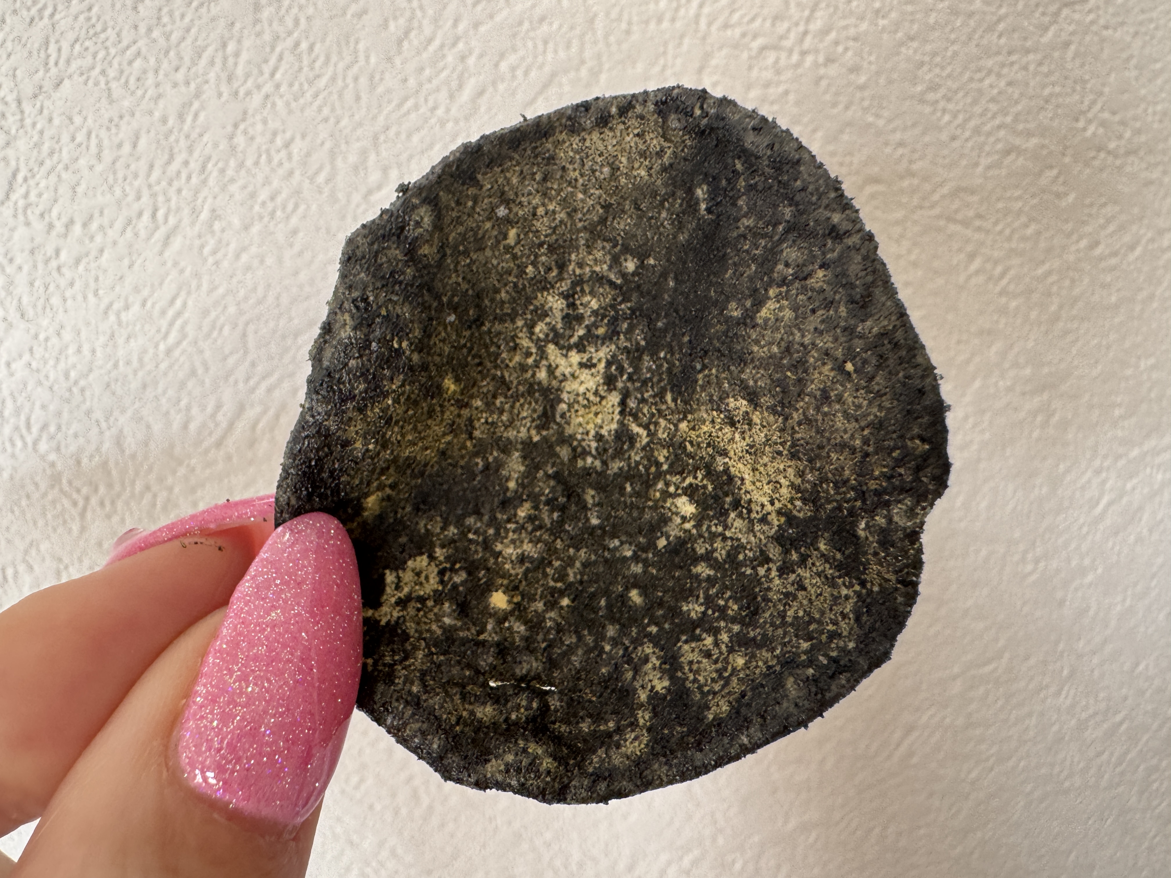 こちらはドンキで期間限定発売中の『黒い生姜せん』(税込302円)。「黒いお菓子を作りたい」というドンキの思いから誕生したらしいこの商品は、ズバリ生地に黒い竹炭を練り込んだもの。ここへきてなぜドンキは急に黒いお菓子を量産したくなったのだろう? それは一旦おいといて……