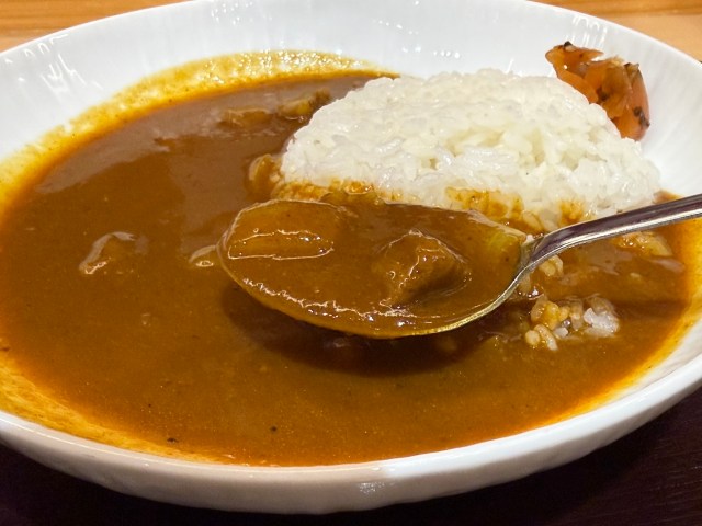 昔ながらの優しい味を想像していたが、実際は思ったよりも辛口でスパイシー。しっかりとパンチのある味わいで、現代的なカレーに近い印象。フルーティーな甘みも感じられる。具材は少ないものの、カレー自体の味はしっかりしていて満足感がある。