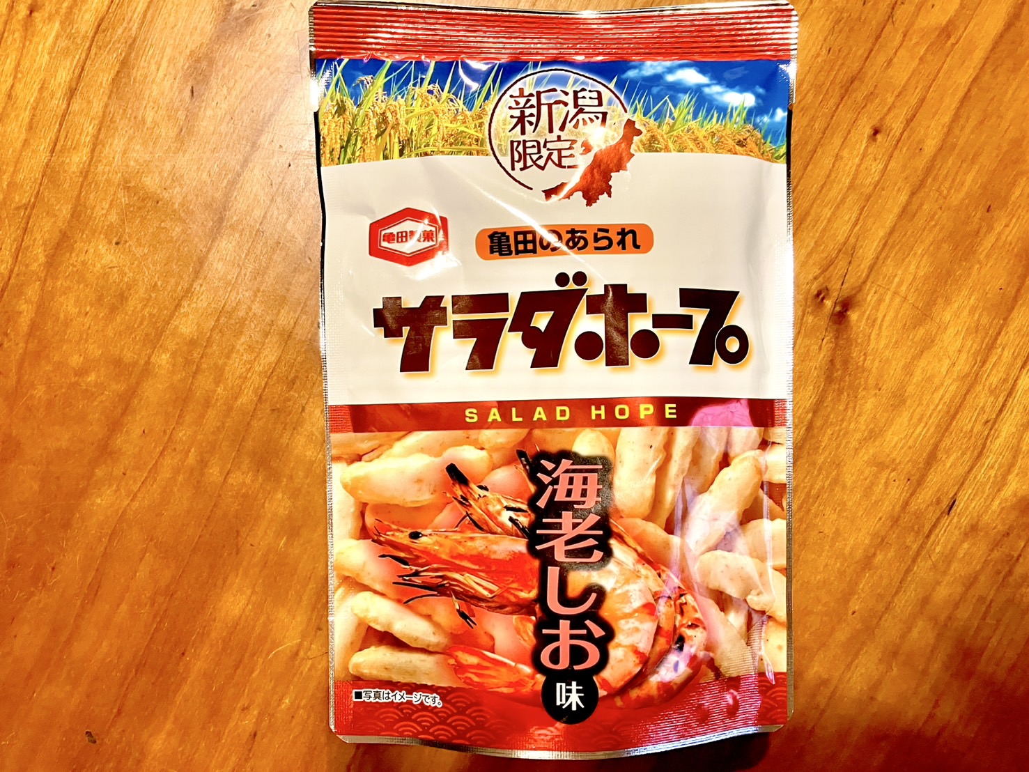 この「海老しお味」をはじめとした他の味のサラダホープは、お土産用の1000円くらいする大袋に入って販売されていることが多い印象。
