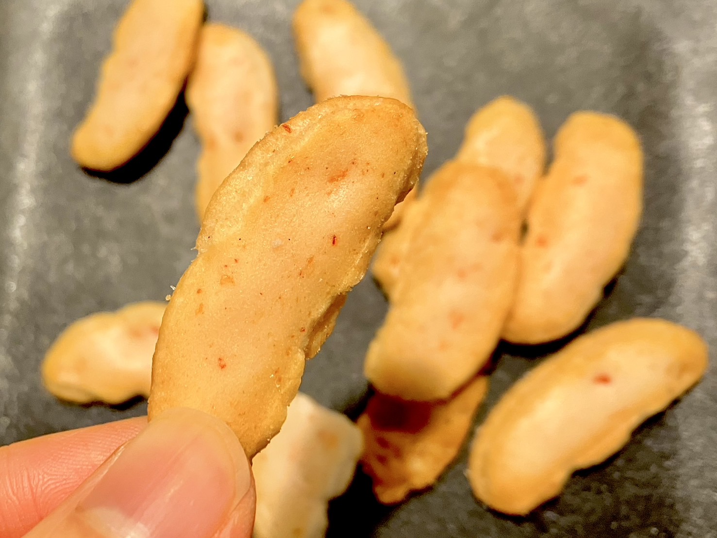 うま塩味のサラダホープと比べると少し赤みがかっていたり赤い粒が入っていたりして、ビジュアルからすでに海老を感じる。