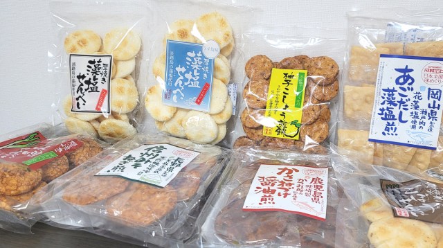 以上8点の煎餅が入って、価格は税込3325円だった。通常の手続きでこれらをまとめて購入した場合は、約3500円ほどかかるようだ。