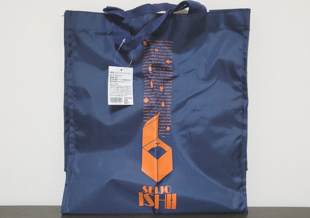 そこだけを見ると若干お得程度にとどまる福袋だが、実は「成城石井」ブランドのショッピングバッグも同梱されている。ネイビーオレンジのカラーがオシャレである。このバッグの分も加味すると、なかなかお買い得ではないかと思う。