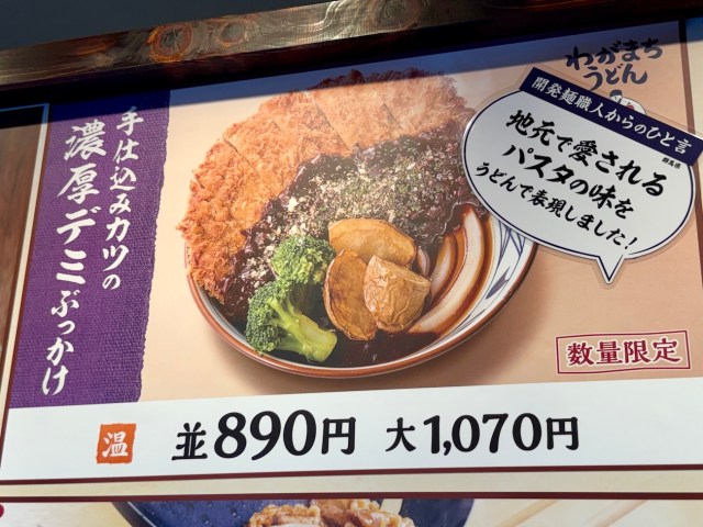 群馬限定うどんの名前は「手仕込みカツの濃厚デミぶっかけ」。前回の栃木限定は完売・完売と苦戦してやっと3回目で食べることができたが、今回は一発でスムーズに購入。これはラッキー……なのだろうか。