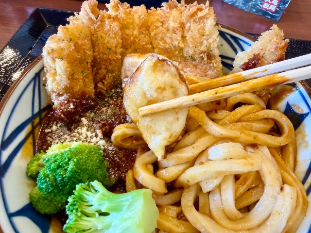 【丸亀製麵】今年最高峰のカオスうどん! 長崎限定「玉子天のせトルコライス風うどん」を食べてみた / わがまちうどん47