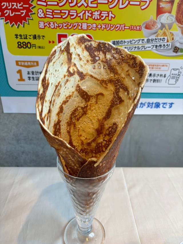 若者に人気のクレープを、デニーズ流にアレンジ。あの「キャラメルハニーパンケーキ」と同じ粉を使っているというから、期待しかない。