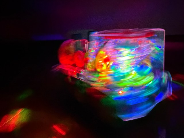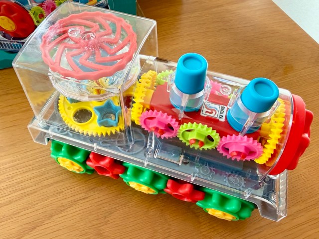 歯車トレインの見た目は完璧。透明なボディから歯車の動きがハッキリ見えるし、デザインもポップで可愛らしい。ライトアップしたら幻想的になるだろう。子供ウケも良さそうだ。