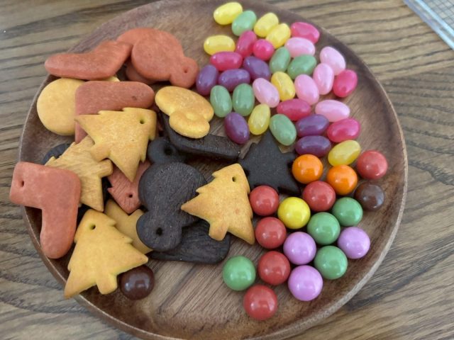 購入品はこちら。デコレーション用にカラフルチョコとグミ、クッキーなども無印良品にて購入。