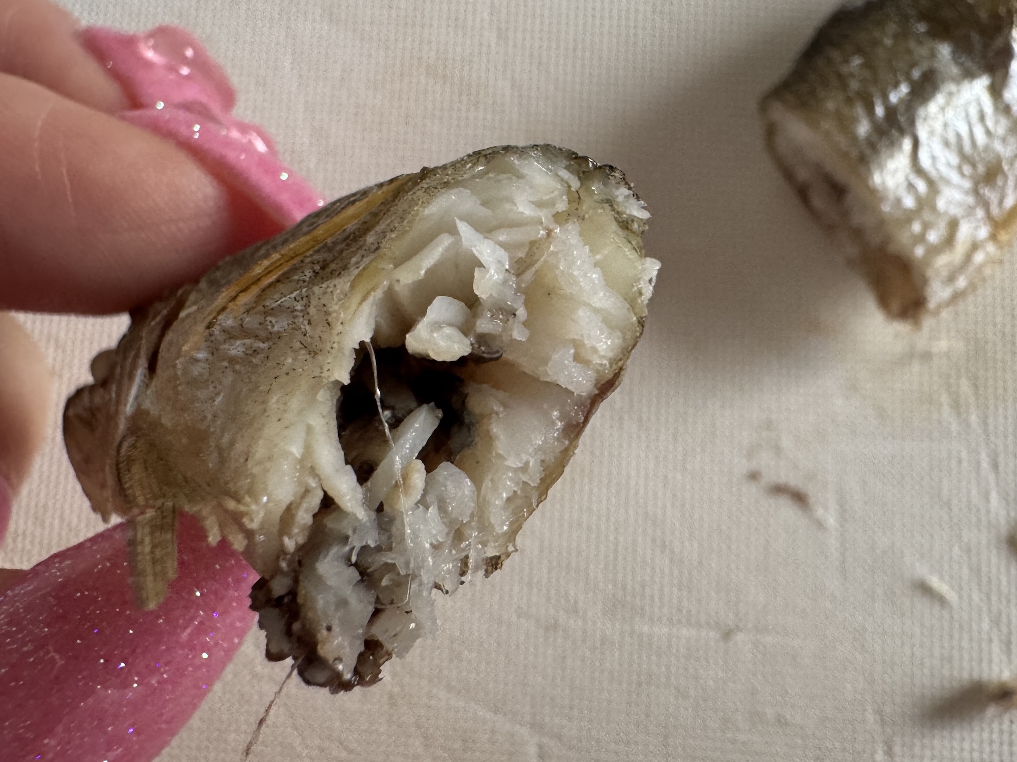 購入した生ししゃもの腹をさっそく「開けて」みると……