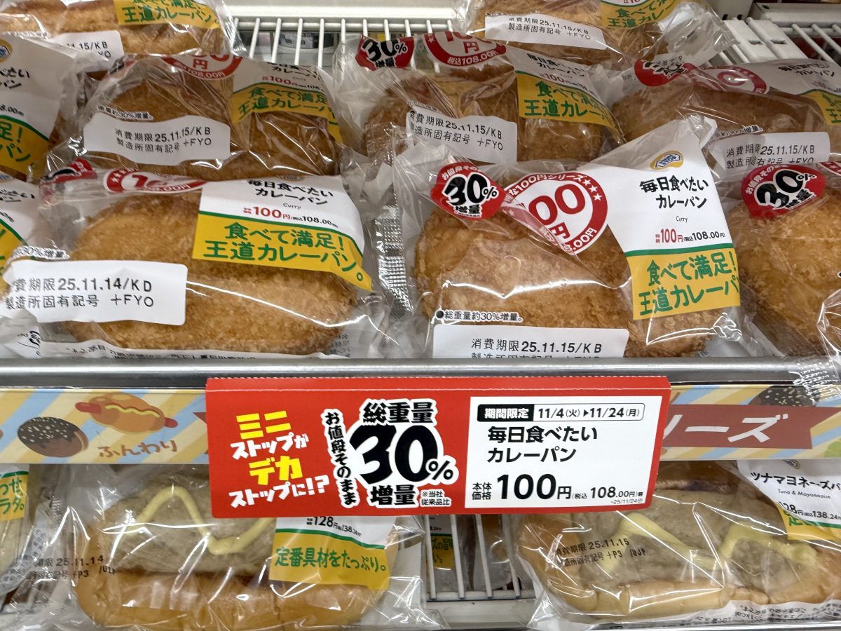 毎日食べたいカレーパン(総重量30%増量:108円)