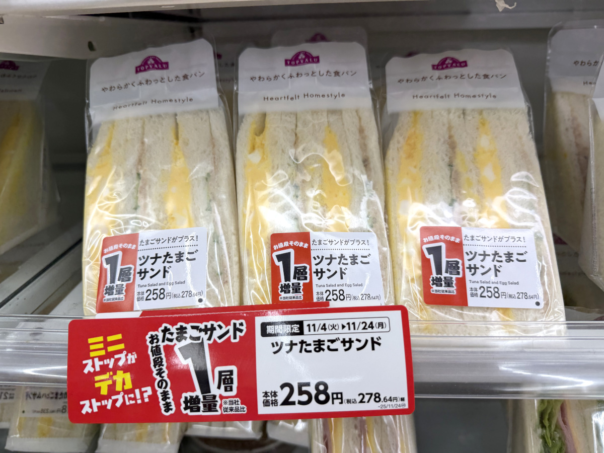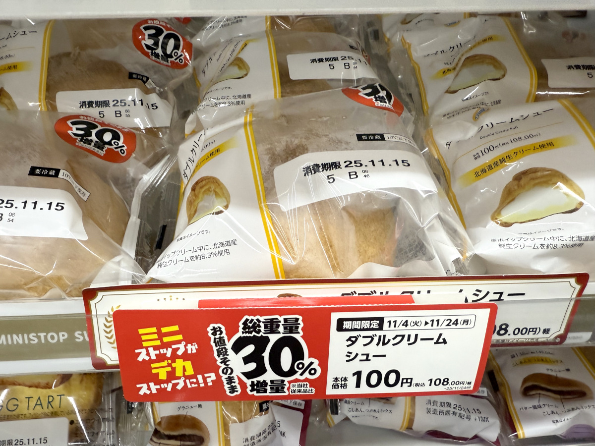 2025年11月4日~24日まで、3週間にわたり開催されるミニストップの50%増量フェア。中には50%増量ではない商品もあるようだが、全20品がお値段をそのままに増量仕様で登場するという。